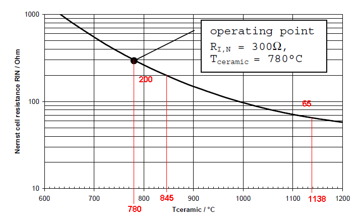 Существуют рекомендуемые сопротивления ячейки Нернста (Rnernst) для поддержания рабочей температуры сенсора - в частности для нашего LSU4.9 это рекомендуемое значение 300 Ом при этом температура керамики сенсора поддерживается примерно на уровне 780 градусов Цельсия.