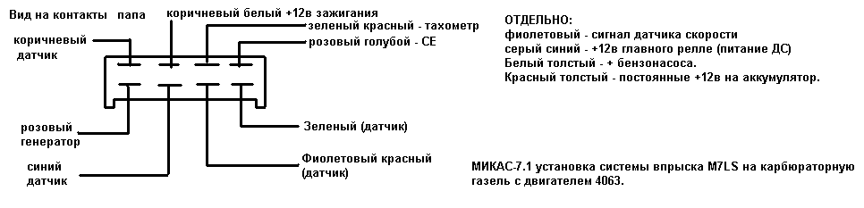 РХХ само собой при этом должен быть установлен моментный (Волговский или один из совместимых - см страничку иномарок) поскольку блок Микас-7 не поддерживает шаговый РХХ используемый в системах ВАЗ.