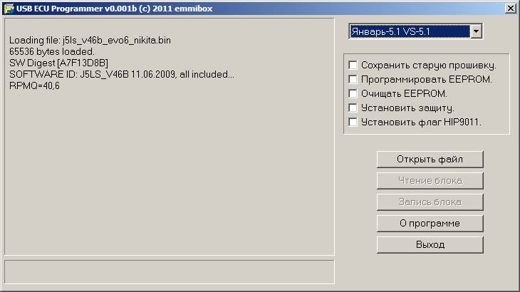 и факт подключения ЭБУ к программатору.