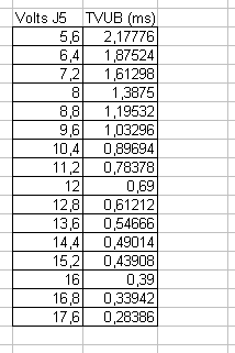 Резисторы идут на 37 ногу ЭБУ - т.е. непосредственно к выводу соединенному с плюсом питания форсунок (от главного реле). Верхний резистор делителя 67.8k Нижний 27.4k - разница напряжений до после делителя считается как (67.8+27.4)/27.4=3,474453 Общая формула преобразования для X оси в физический вольтаж таким образом выглядит так UB(v) = X(corr)*(67.8+27.4)*5/(27.4*2^8), вновь пересчитаем ось X в нашей табличке TVUB используя эти новые знания: