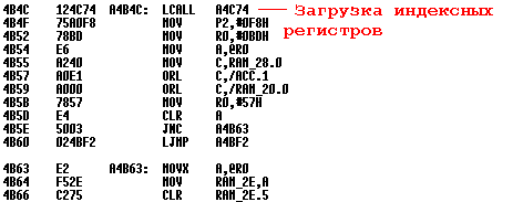 Поэтому сейчас мы тупо ищем в листинге кусок управляющий форсунками. Нам известно, что во всех системах на базе 80с5x7 форсунки подключены на порт P4, так как именно к нему подключен модуль сравнения, наиболее удобный для управления форсунок. Если же мы не знаем куда к процессору подключены форсунки - это не проблема. Они легко вызваниваются тестером по плате сначала от разъема на выходы драйвера форсунок а потом по PDF на драйвер - от входов драйвера к процессору. Именно для этого у нас и есть распаянная плата. В данном случае так же мы знаем, что форсунок - 3 штуки, поэтому мы не будем прозванивать их по плате, а будем искать в коде - где портом P4 будут управлять на 3-х каналах обязательно с использованием модуля сравнения.